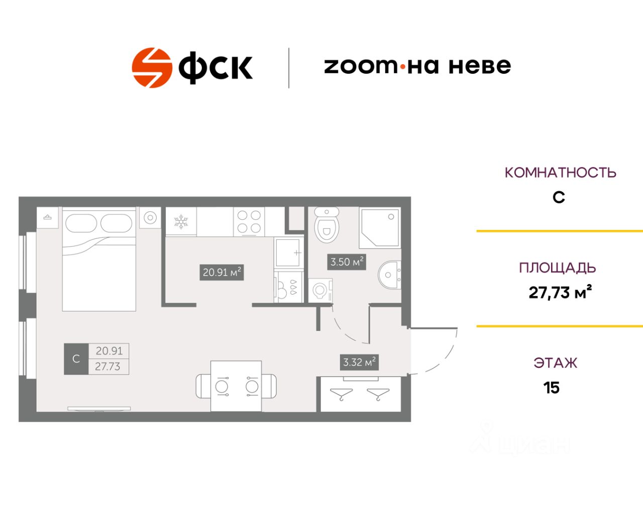 Цена со скидкой до 30% в прямой продаже от застройщика — только в этом месяце. При покупке апартаментов - паркинг за полцены. На все апартаменты действует беспроцентная рассрочка. Купите на распродаже! Покупка недвижимости в Zoom на Неве сейчас со скидкой до 30% позволит через 2 года получить доход до 6 300 000 руб. Роскошные виды на Неву. Апартамент-студия в комплексе класса бизнес-лайт Zoom на Неве на 15-м этаже. Общая площадь 27,73. Без отделки.