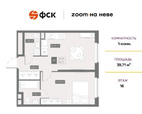 Цена со скидкой до 30% в прямой продаже от застройщика — только в этом месяце. При покупке апартаментов - паркинг за полцены. На все апартаменты действует беспроцентная рассрочка. Купите на распродаже! Покупка недвижимости в Zoom на Неве сейчас со скидкой до 30% позволит через 2 года получить доход до 6 300 000 руб. Роскошные виды на Неву. 1-к апартамент в комплексе класса бизнес-лайт Zoom на Неве на 16-м этаже. Общая площадь 39,71. Предчистовая отделка.