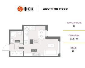 Цена со скидкой до 30% в прямой продаже от застройщика — только в этом месяце. При покупке апартаментов - паркинг за полцены. На все апартаменты действует беспроцентная рассрочка. Купите на распродаже! Покупка недвижимости в Zoom на Неве сейчас со скидкой до 30% позволит через 2 года получить доход до 6 300 000 руб. Роскошные виды на Неву. Апартамент-студия в комплексе класса бизнес-лайт Zoom на Неве на 17-м этаже. Общая площадь 23,57. Без отделки.