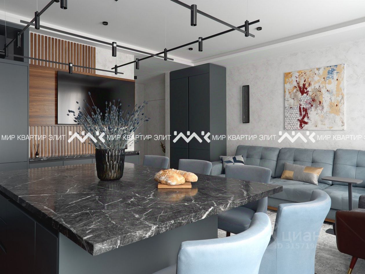 В квартире сделан высококачественный ремонт по авторскому проекту с использованием натуральных материалов и современных технических решений: максимальная звукоизоляция во всех помещениях, фильтры на воду, система против протечек воды и умный дом, система кондиционирования и принудительная приточно-вытяжная вентиляция с фильтрацией воздуха. В отделке использована венецианская штукатурка, натуральный шпон американского ореха и мрамор. Вся встроенная мебель изготовлена на заказ, поэтому предусмотрено много дополнительных мест хранения.