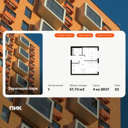 Продаётся 1-комн. квартира площадью 37,73 кв.м на 22 этаже 24 этажного дома (Корпус 5, Секция 2) проекта ПИК Заречный парк. Светлый просторный подъезд на уровне земли, функциональная планировка, большие окна, c отделкой.