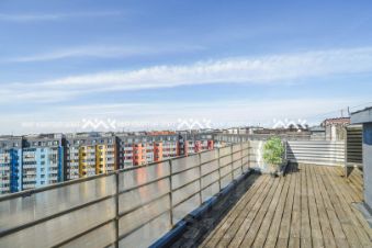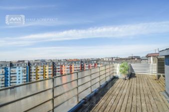 Последний, 10-й этаж с просторной обустроенной террасой в мезонине с доступом прямо из квартиры.