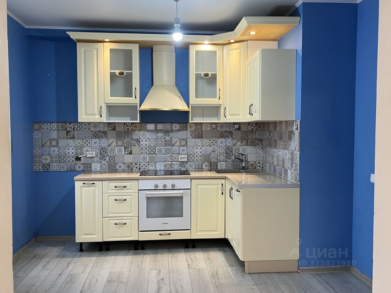 Оборудованная кухня с гарнитуром, индукционной плитой, духовкой, вытяжкой, раковиной.