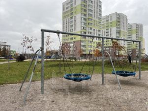 Вокруг дома организованы зеленые лужайки, каток, волейбольная и баскетбольная площадки, большой стадион, ленивые качели, детские площадки, скейтпарк, площадка для тренировки собак, домики для гриля, по выходным проводятся праздники.