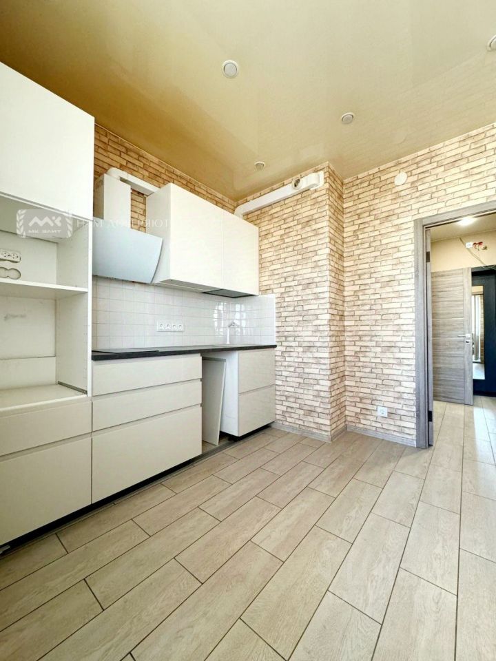 Остается кухонный гарнитур, варочная панель, вытяжка и вместительный шкаф.