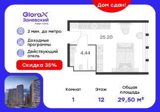 Продается апартамент-студия на 12-м этаже в сданном Апарт-комплексе бизнес-класса "GloraX Заневский". Ключи сразу! Общая площадь лота составляет 29,64 кв. м, из которых 25,20 кв. м отведено под жилую. Номер апартамента - 1 226.