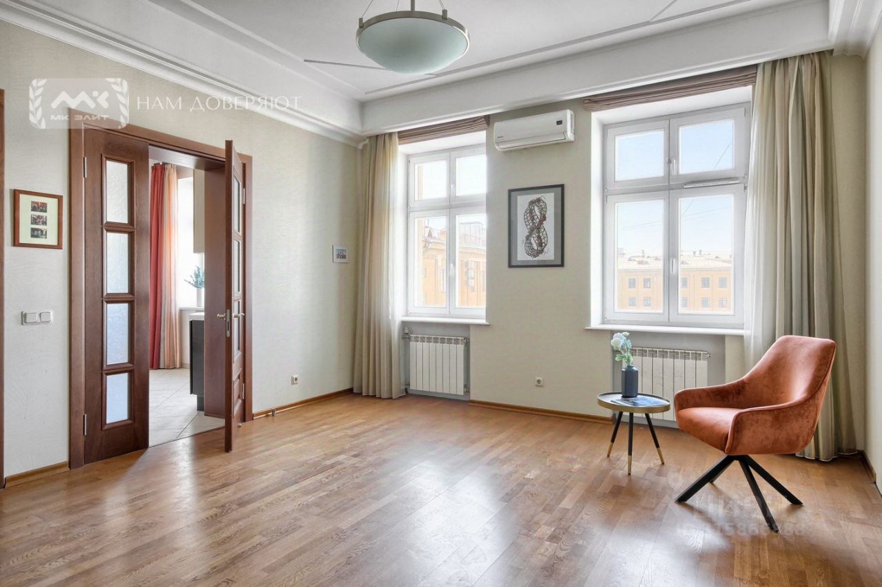 Арт. 99956331 Элегантная семейная квартира в доме военморов. Простор, высокие потолки и дизайнерский ремонт создают здесь безупречную атмосферу уюта и комфорта.