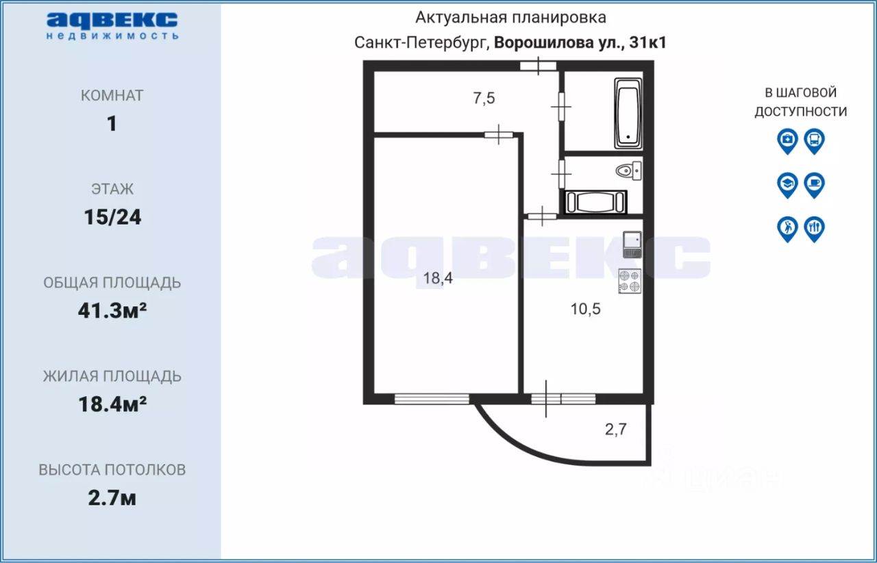 Квартира находится по адресу: улица Ворошилова, 31к1, в районе с развитой инфраструктурой. Здесь есть всё необходимое для жизни: магазины, рестораны, кафе и спортивные клубы. Близость к деловым центрам и отличная транспортная доступность позволят вам с лёгкостью добираться до работы и досуга. Более того, в непосредственной близости расположены остановки общественного транспорта, что сделает ваше ежедневное передвижение ещё более удобным. Имеется функциональная гардеробная. Так же, а стоимость квартиры входит собственное парковочное место, сэкономит время для поиска парковки, что очень важно.