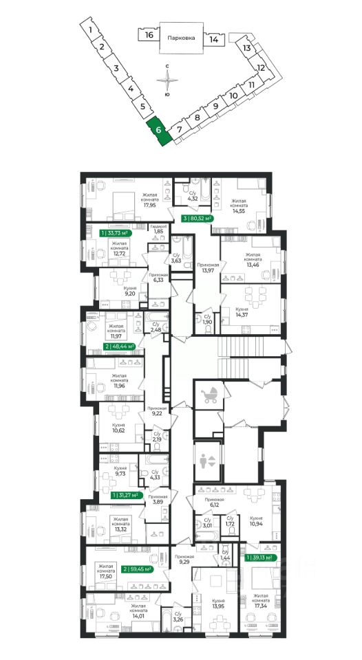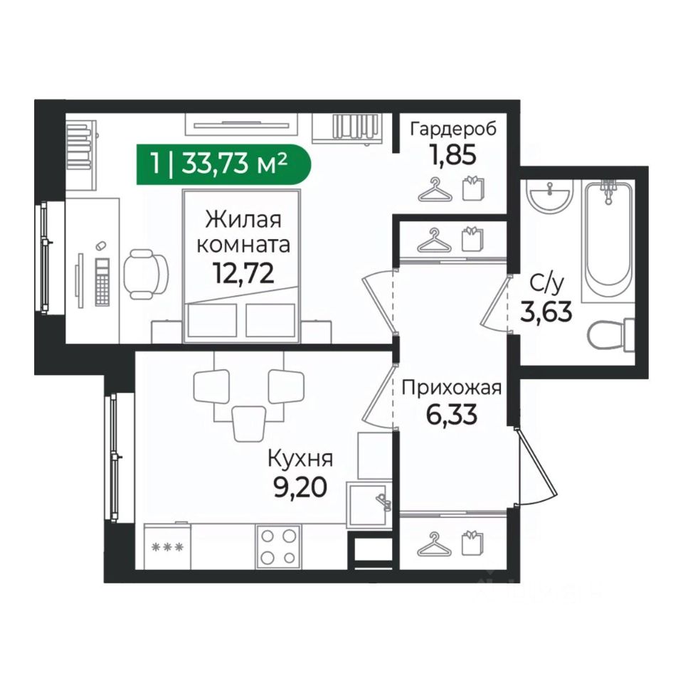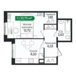 1 - комнатная квартира на 1 этаже общей площадью 33,73 м² в IV очереди в жилом комплексе Сертолово Парк от застройщика ГК Алгоритм.
