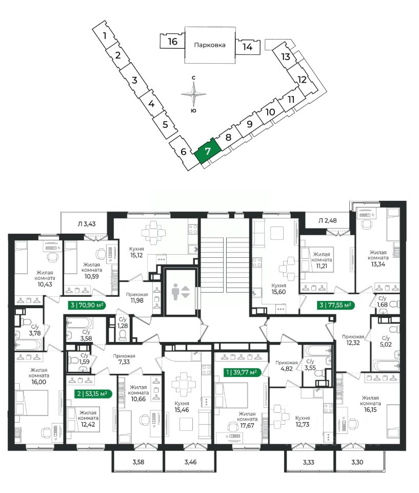 3 - комнатная квартира на 4 этаже общей площадью 77,55 м² в IV очереди в жилом комплексе Сертолово Парк от застройщика ГК Алгоритм.