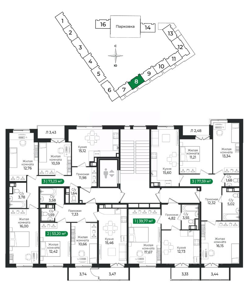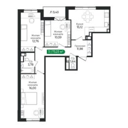 3 - комнатная квартира на 3 этаже общей площадью 73,23 м² в IV очереди в жилом комплексе Сертолово Парк от застройщика ГК Алгоритм.