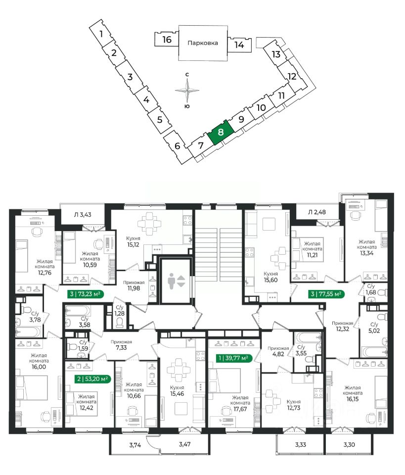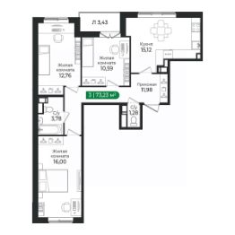 3 - комнатная квартира на 5 этаже общей площадью 73,23 м² в IV очереди в жилом комплексе Сертолово Парк от застройщика ГК Алгоритм.