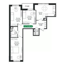 3 - комнатная квартира на 3 этаже общей площадью 74,08 м² в IV очереди в жилом комплексе Сертолово Парк от застройщика ГК Алгоритм.