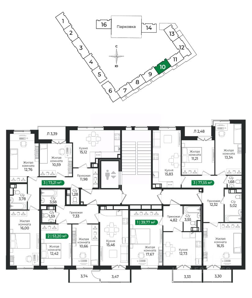 1 - комнатная квартира на 5 этаже общей площадью 39,77 м² в IV очереди в жилом комплексе Сертолово Парк от застройщика ГК Алгоритм.