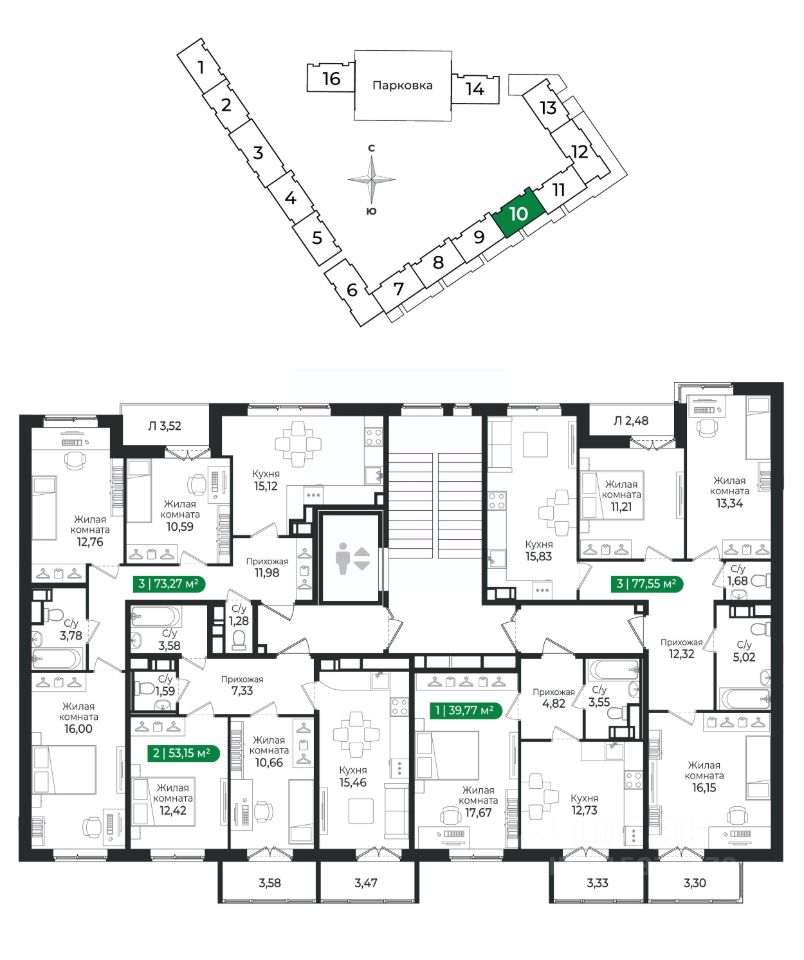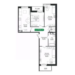 3 - комнатная квартира на 6 этаже общей площадью 77,55 м² в IV очереди в жилом комплексе Сертолово Парк от застройщика ГК Алгоритм.