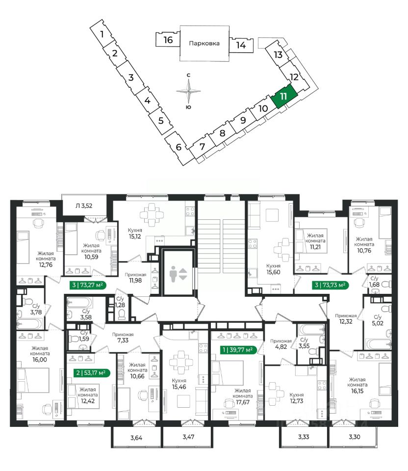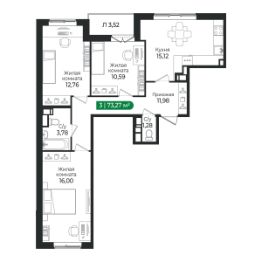 3 - комнатная квартира на 4 этаже общей площадью 73,27 м² в IV очереди в жилом комплексе Сертолово Парк от застройщика ГК Алгоритм.
