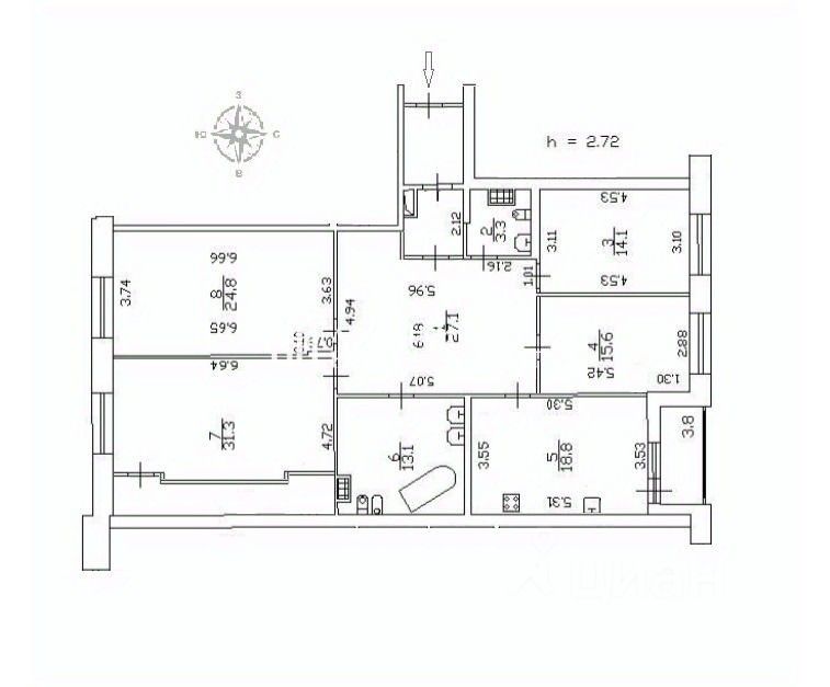 ПРОСТОРНАЯ, СВЕТЛАЯ четырёхкомнатная квартира общей площадью 153.1 м² с действительно КОМФОРТНОЙ планировкой, ДИЗАЙНЕРСКИМ ремонтом и ВЫСОКИМИ потолками 2.72 м.