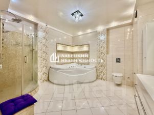 ВНУШИТЕЛЬНАЯ ванная комната с ДЖАКУЗИ и душевой кабиной, а также ТЕПЛЫМИ полами. На стенах и полу выложен КАЧЕСТВЕННЫЙ КЕРАМОГРАНИТ, потолки натяжные со встроенными LED-светильниками. Установлена ДОРОГАЯ сантехника от европейских производителей.