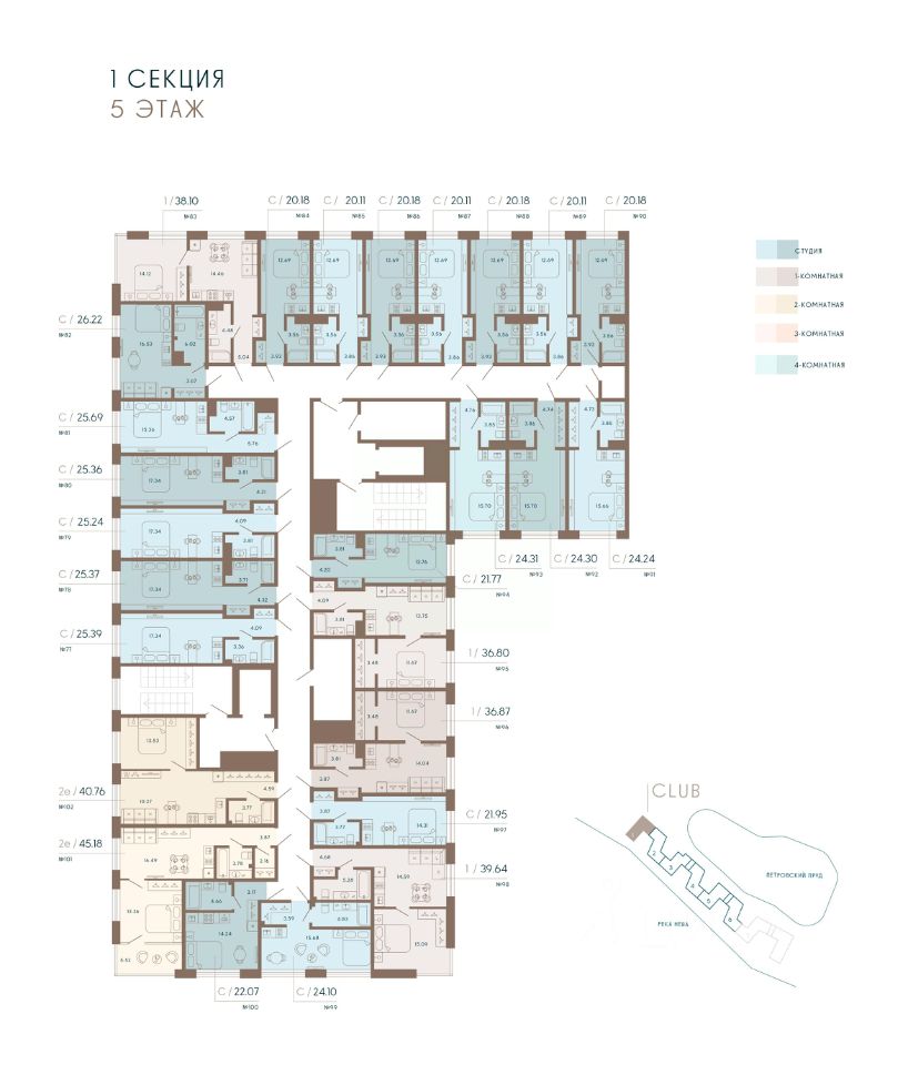 100% видовых апартаментов. Виды на Малую Невку, на Петровский пруд.;