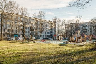 Дом 1971 года постройки в хорошем состоянии, чистая парадная. Развитая инфраструктура района: рядом находятся школы, детские сады и магазины, что делает это место особенно привлекательным для семей с детьми.