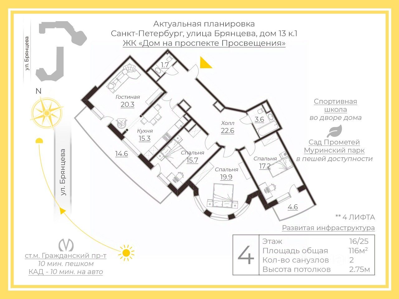 • 14 мин на авто до станции метро Проспект Просвещения;