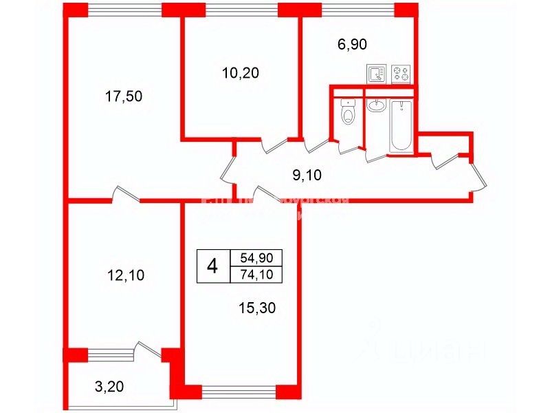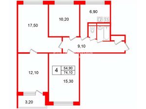 Общая площадь составляет 74,1 кв.м. Здесь вы найдете всё необходимое для комфортной жизни: в непосредственной близости расположены детские сады, три школы, в том числе Лицей 344, поликлиника, а также торговые комплексы и сетевые магазины. Для приятных прогулок и активного отдыха рядом расположен Брестский парк.