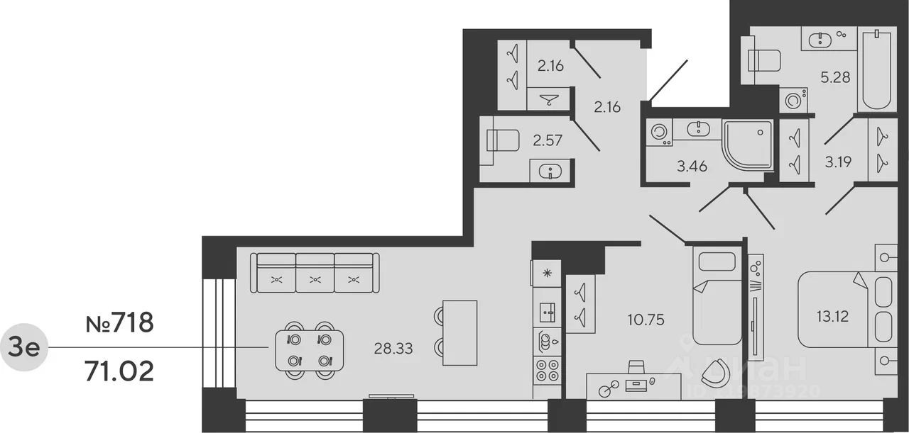 Квартира 718 в корпусе Titan проекта бизнес-класса "BASHNI ELEMENT"
