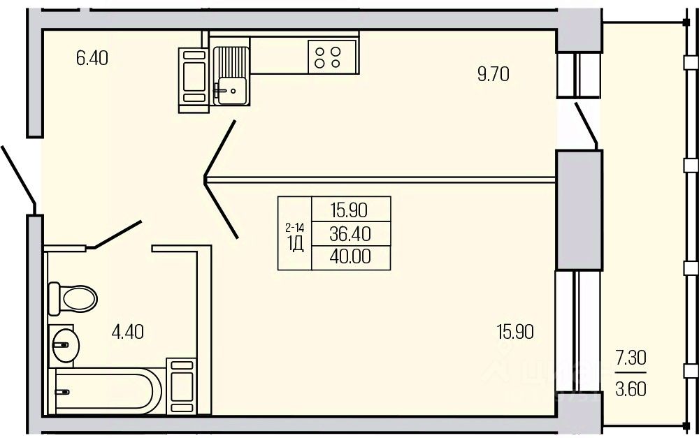 Продаётся 1-комнатная квартира в сданном доме (ул. Железнодорожная, 5А (Дом 1)), срок сдачи: III-кв. 2025, общей площадью 40 кв.м., на 9 этаже. Новый жилой комплекс "ЭКОС" от застройщика "ГК Арена" расположен по адресу Ленинградская область, Всеволожский район, Кузьмоловский пгт, Железнодорожная улица.