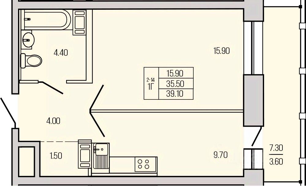 Продаётся 1-комнатная квартира в сданном доме (ул. Железнодорожная, 5А (Дом 1)), срок сдачи: III-кв. 2025, общей площадью 39.1 кв.м., на 10 этаже. Новый жилой комплекс "ЭКОС" от застройщика "ГК Арена" расположен по адресу Ленинградская область, Всеволожский район, Кузьмоловский пгт, Железнодорожная улица.