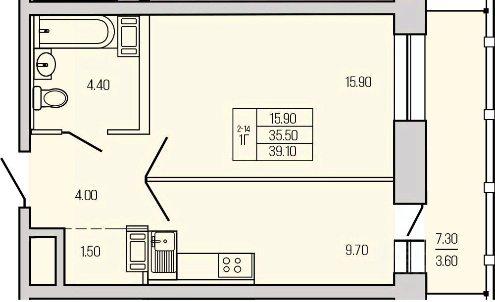 Продаётся 1-комнатная квартира в сданном доме (ул. Железнодорожная, 5А (Дом 1)), срок сдачи: III-кв. 2025, общей площадью 39.1 кв.м., на 9 этаже. Новый жилой комплекс "ЭКОС" от застройщика "ГК Арена" расположен по адресу Ленинградская область, Всеволожский район, Кузьмоловский пгт, Железнодорожная улица.
