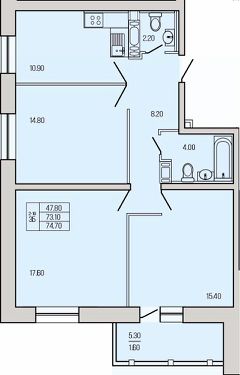 74,7 м²