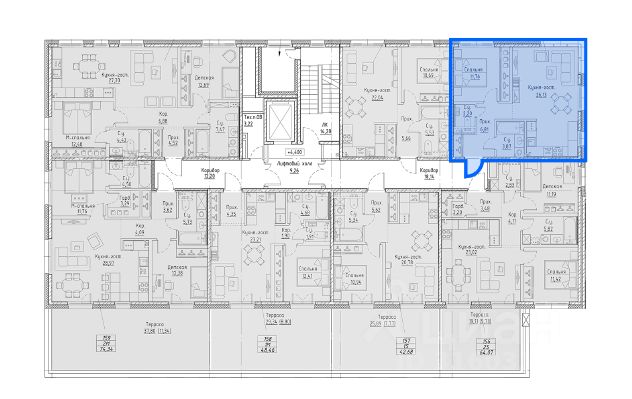 Изюминка квартиры большая кухня гостиная 26.3 м2 с 3 панорамными окнами(одно из них угловое) и видом в красивый, уютный двор.