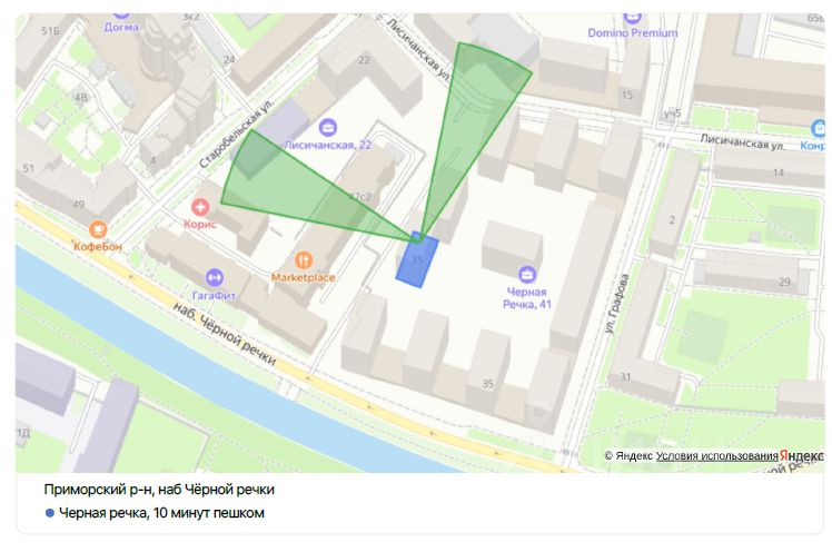 Удобная транспортная доступность: 9 минут пешком до метро Черная речка.