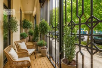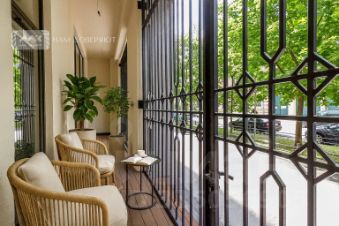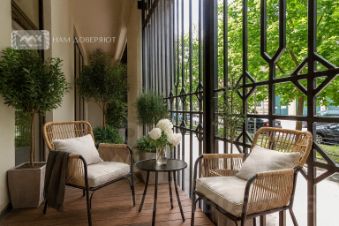 - Двор-курдонер с фонтаном. Авторский дизайн, аромат гортензий и свежесть Невы — прогулка, чтение книги, душевная беседа за чашечкой кофе станут здесь истинным удовольствием.