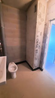 Квартира расположена на 8 этаже из 9, вид из окон на поля и частный сектор, перед домом больше ничего построено не будет. Большой застекленный балкон. Сделана предчистовая отделка, установлен строительный унитаз и раковина для проведения финальных ремонтных (декоративных) работ (поклейка обоев, укладка пола и тд).
