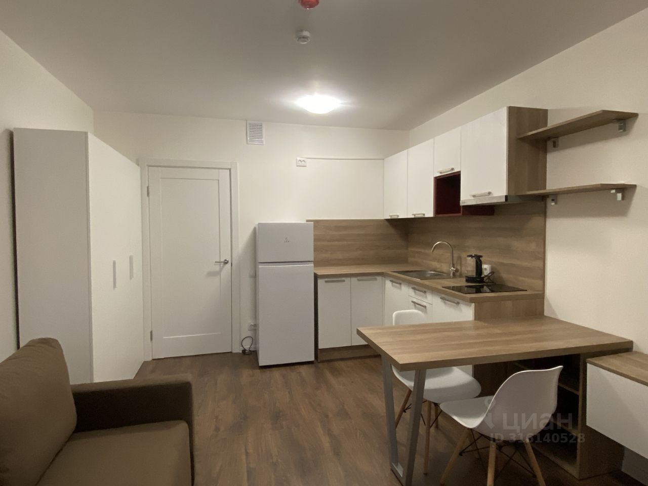 Комната : Удобный двуспальный диван, просторный гардероб, тумбы, полки. Жилая зона отделена от прихожей дверью.