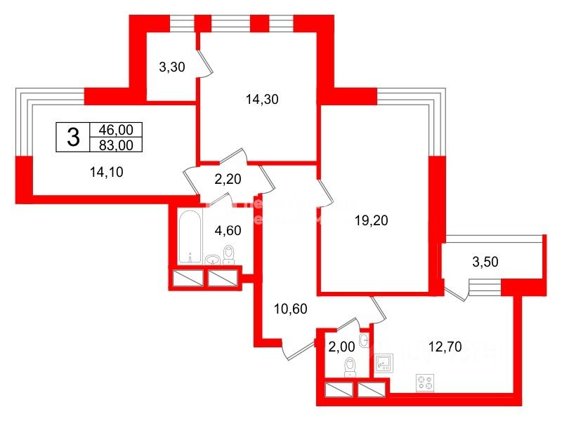 В продаже трехкомнатная квартира в современном доме 2013 года постройки, с балконом, кухней-гостиной 16м2, тремя изолированными комнатами 14,1м2, 14,3м2 (в этой комнате +3,3м2 гардеробная) и комната 17м2; строительная планировка улучшена, сделан свежий ремонт, скрыты все трубы и батареи, использованы качественные материалы, произведена грамотная разводка электрики и водоснабжения. Окна на две стороны, два сан. узла, большой коридор, переходящий в просторную кухню-гостиную. Общая площадь 83м2. Потолки 2,80м. Квартира очень светлая и теплая, расположена на 8 этаже из 24. Отдельная секция на четыре квартиры. Ухоженный подъезд и придомовая территория.