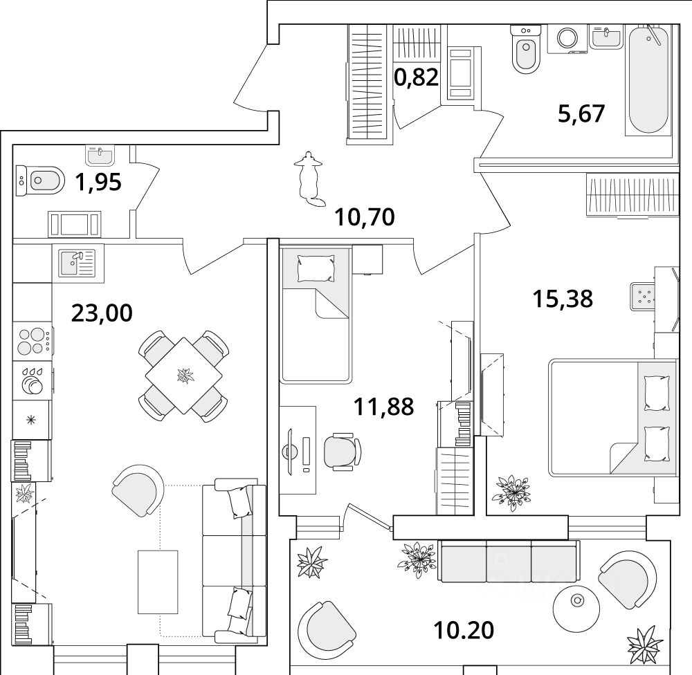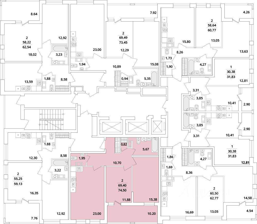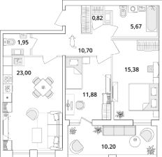 Квартира находится в 18 этажном доме, в Корпус 5-Cube на 6 этаже. Общая площадь квартиры 74,70 кв.м.