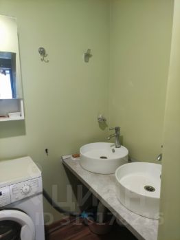 На блок комнат приходится зона прачечной со стиральной машиной, прихожая, туалет, душевая комната и ванная. Везде новая сантехника, свежие коммуникации и ремонт. На полу — кварцвинил и керамогранит.