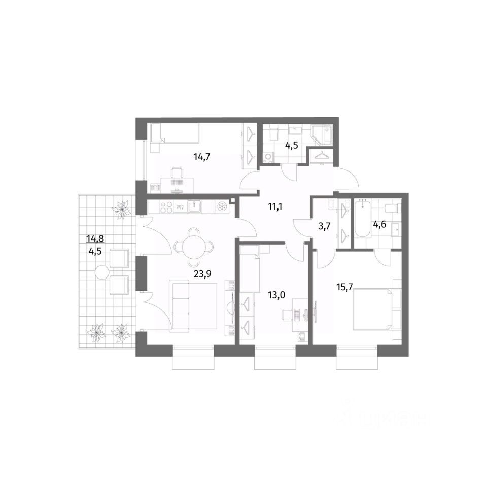 Продается квартира площадью 95.7 м²