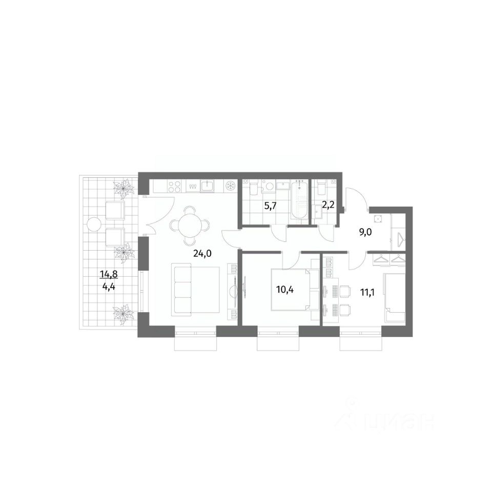 Продается квартира площадью 66.8 м²
