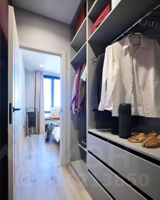 Спальня сделана небольшой, но при этом максимально функциональной - кровать с подъемным механизмом, место для сушилки для белья, для плечиков для одежды. Над изголовьем кровати - полка с беспроводной зарядкой и светильником для чтения перед сном.