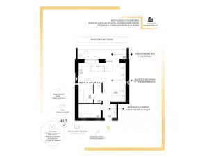 Общий метраж 48.5 м2 (без учета лоджии).