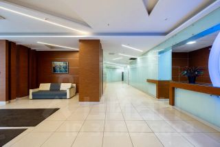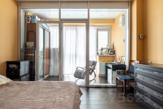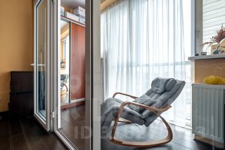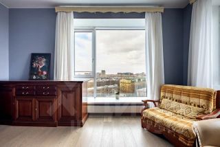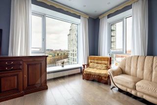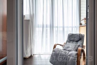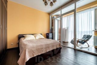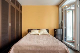 В спальной комнате оборудована большая система хранения и комфортная зона отдыха с видом на панораму города.