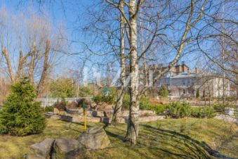 - ухоженная закрытая территория с ландшафтным дизайном, яблоневым садом