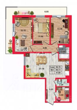 - Комнаты площадью 16.53 м, 11.96 м и 13.56 м обеспечат комфорт и уединение для всех членов семьи. Одно из преимуществ квартиры — наличие зоны для гардеробных, что позволяет максимально эффективно использовать пространство.