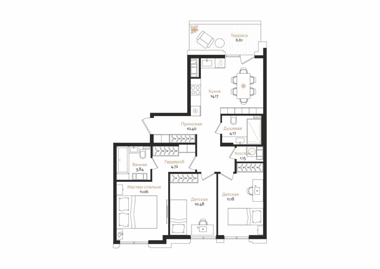 Квартира передается без отделки, что позволяет воплотить свои дизайнерские идеи и создать уникальный интерьер.  Во всех квартирах потолки 3 м и панорамные окна высотой 2,8 м. В каждой секции и на каждом этаже спроектированы помещения для установки кондиционеров. Предусмотрены грузовые лифты, на первых этажах организованы места для хранения детских колясок. Отделка входных групп и общих зон выполнена по авторскому дизайну.