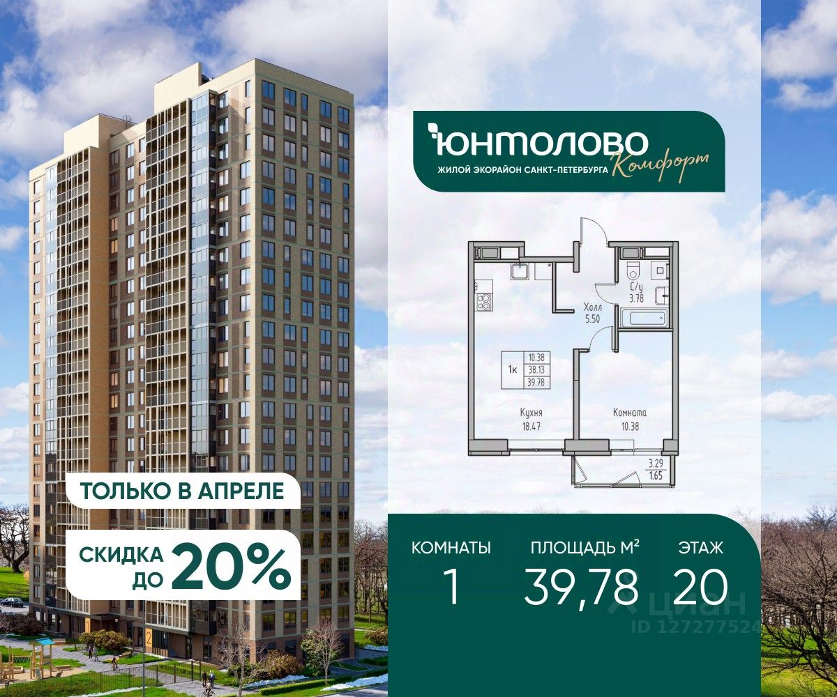 Продаeтся 1-к квартира 39.78 кв.м. экорайона "Юнтолово" (Приморский р-н) напрямую от застройщика "Главстрой Санкт-Петербург". Доступны льготная ипотека, рассрочка, трейд-ин и спецпредложения.