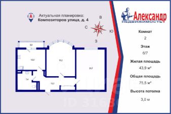 Безусловный плюс квартиры это планировка: 2 просторные изолированные комнаты (19,2 и 24,7 кв м), кухня (12,2 кв м), совмещенный санузел (7,4 кв м), коридор с прихожей (12 кв м). Изюминка комнаты площадью 19,2 кв м эркер. На кухне есть балкон.