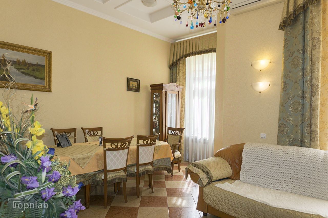 Дом после полной реконструкции 2001 года. Квартира с большим видовым балконом, окнами на две стороны, на улицу Маяковского и на благоустроенный двор. Из окон квартиры открывается панорамный вид на город. Квартира имеет центральное расположение на 3-м этаже 6-ти этажного дома. Великолепная парадная, новый лифт. Парадный вход с улицы Маяковского.